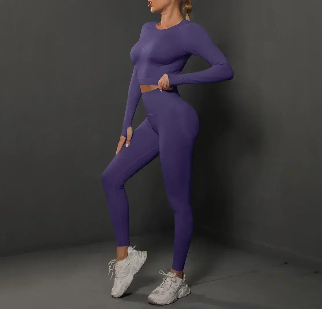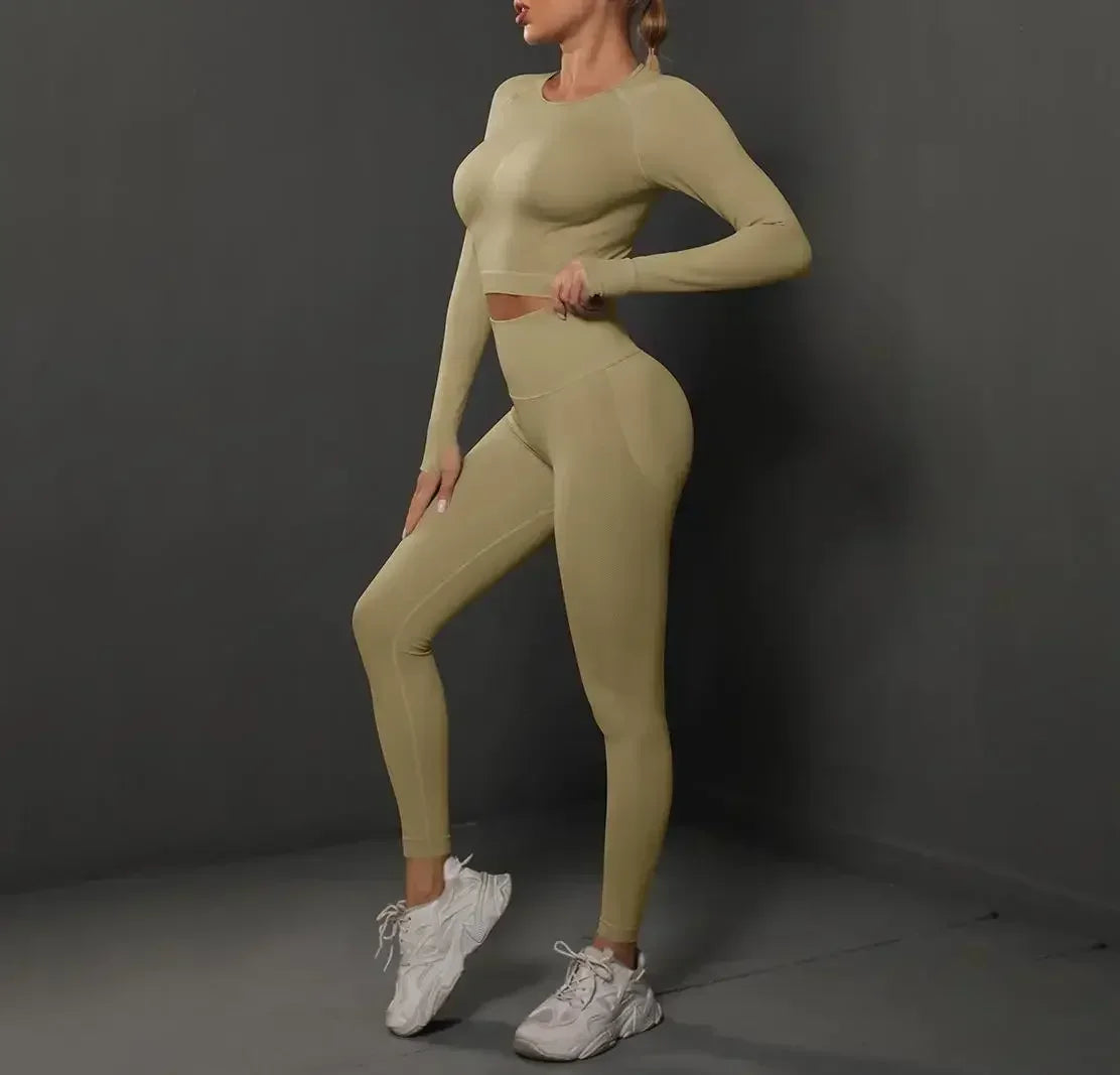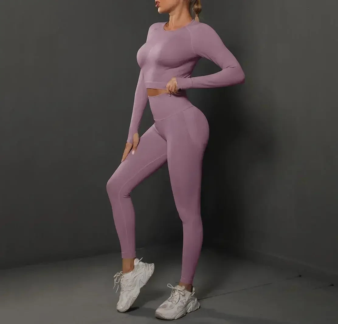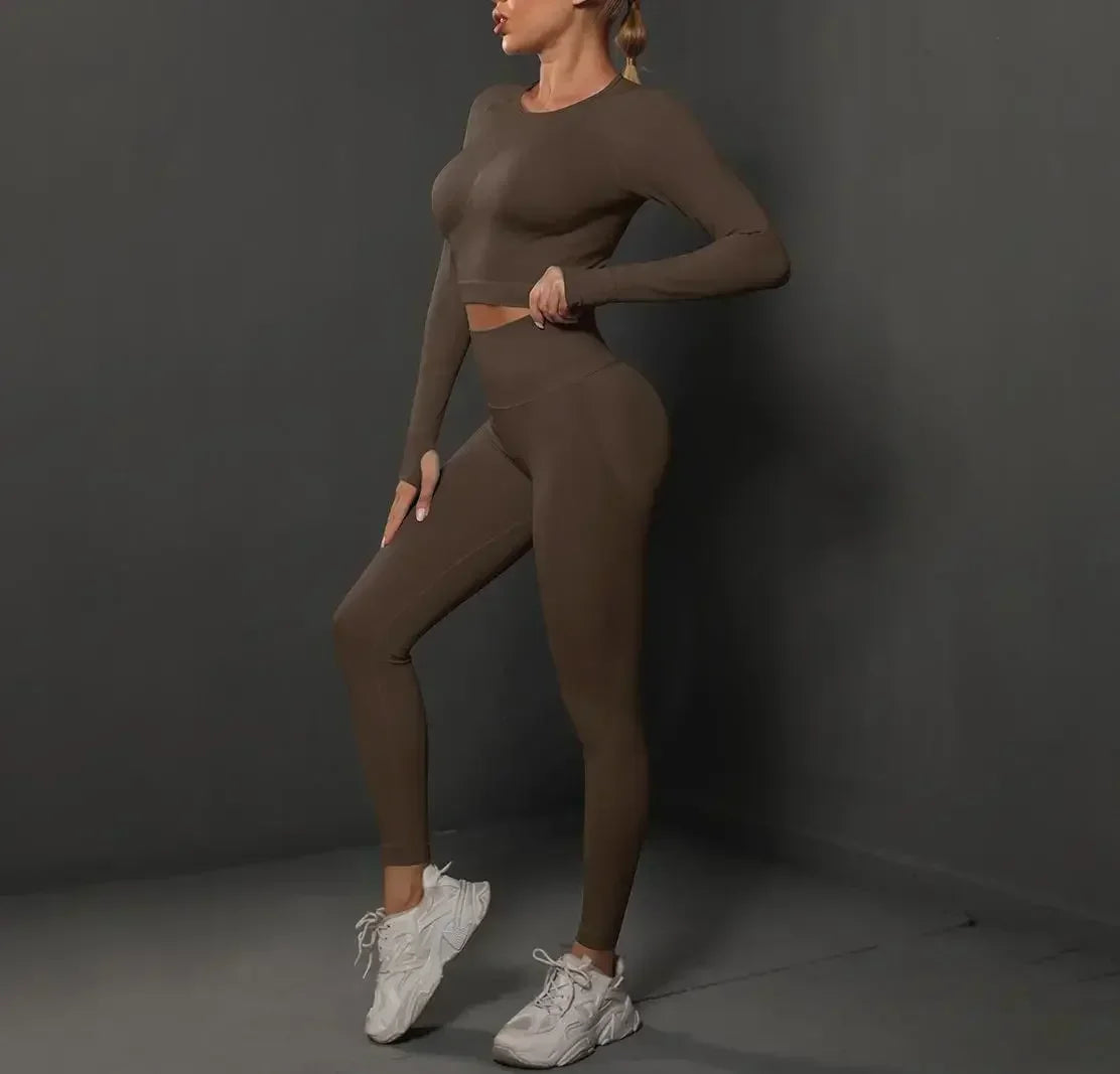 Conjunto de Yoga Feminino Sem Costura, Justo e Modelador de Quadril, Ideal para Esportes, Corrida e Fitness
