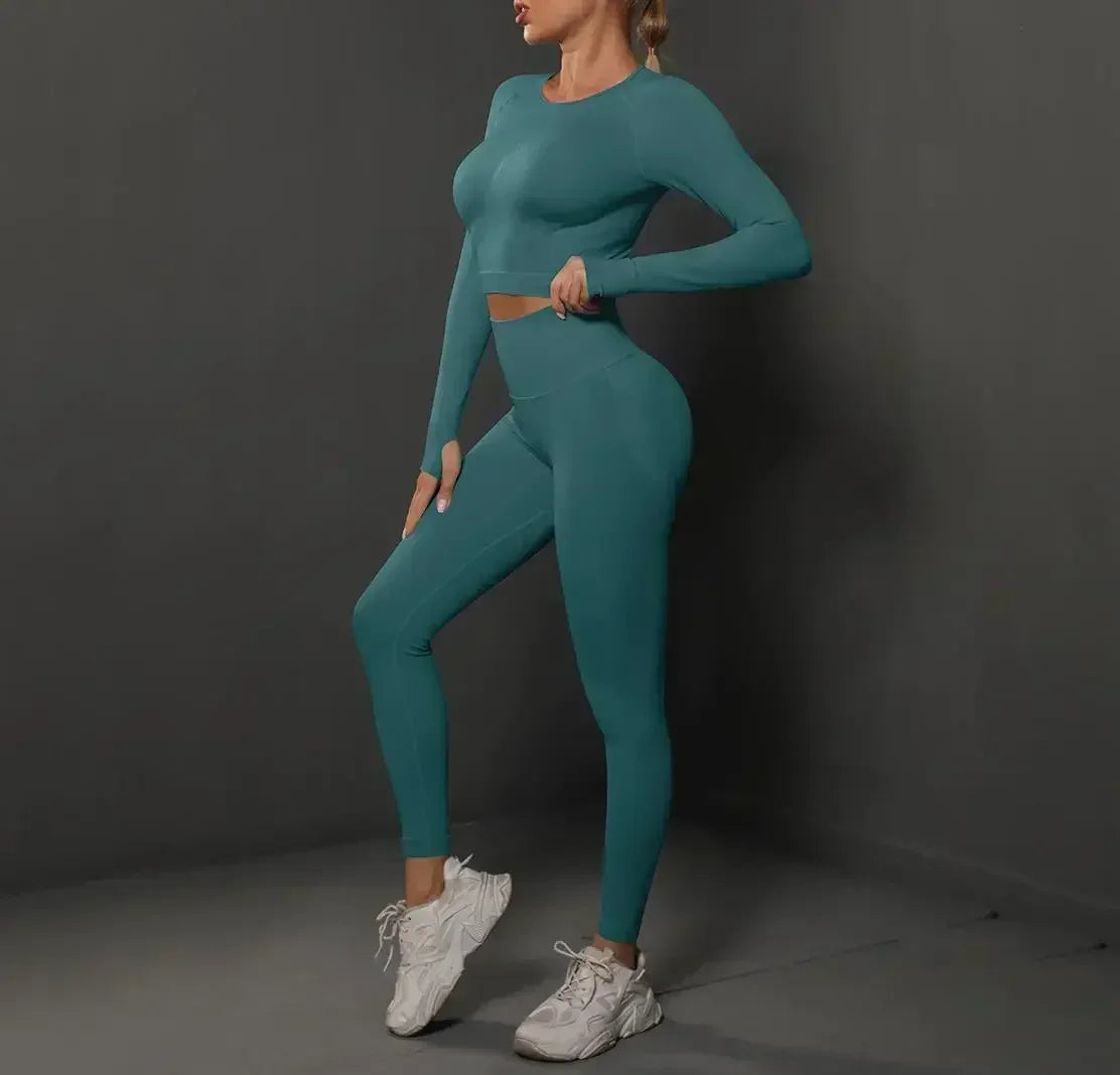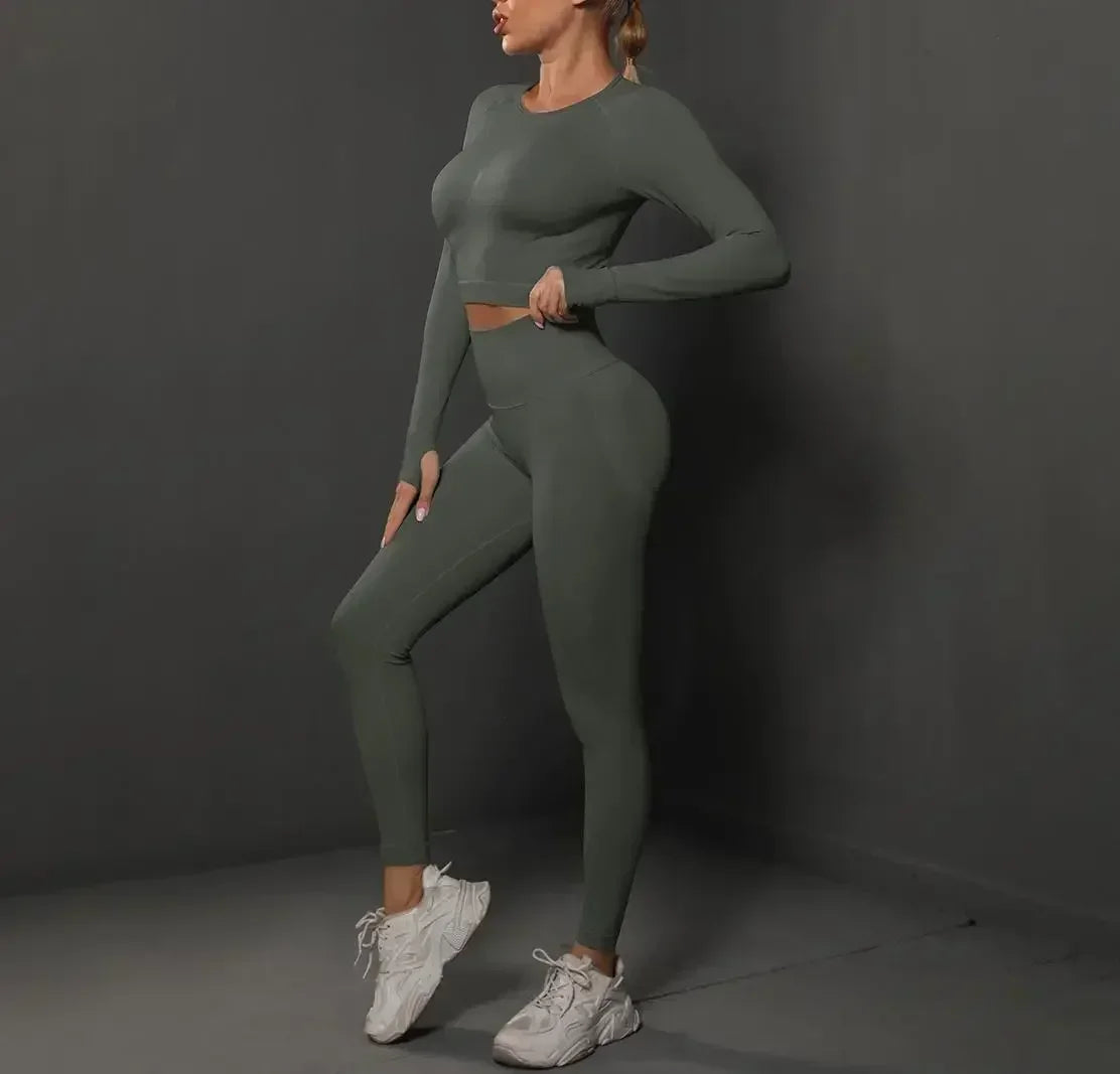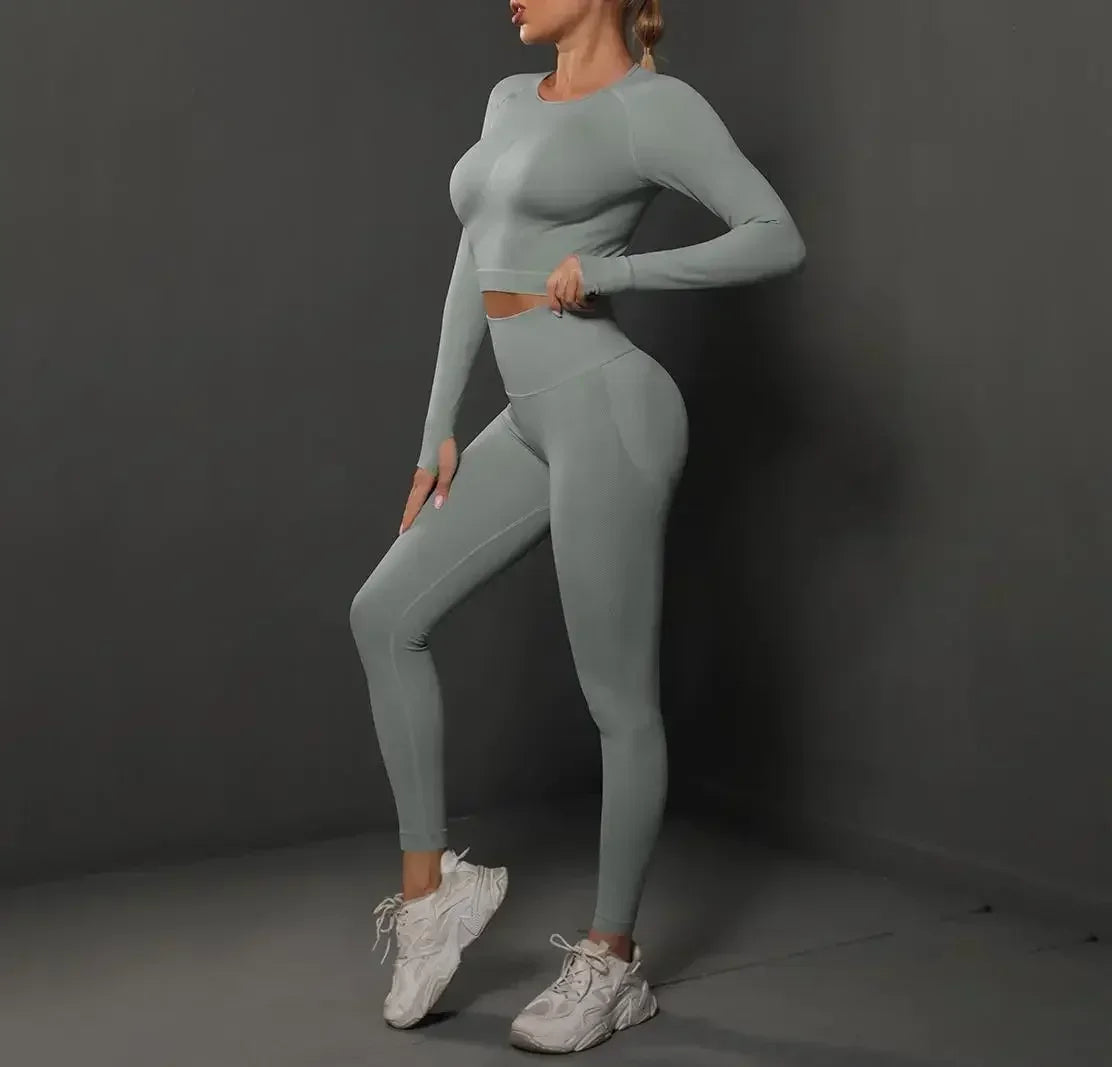 Conjunto de Yoga Feminino Sem Costura, Justo e Modelador de Quadril, Ideal para Esportes, Corrida e Fitness