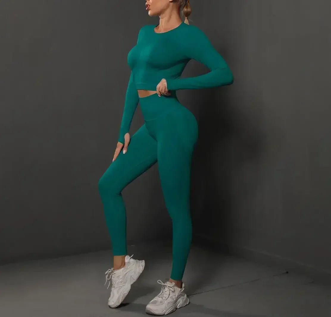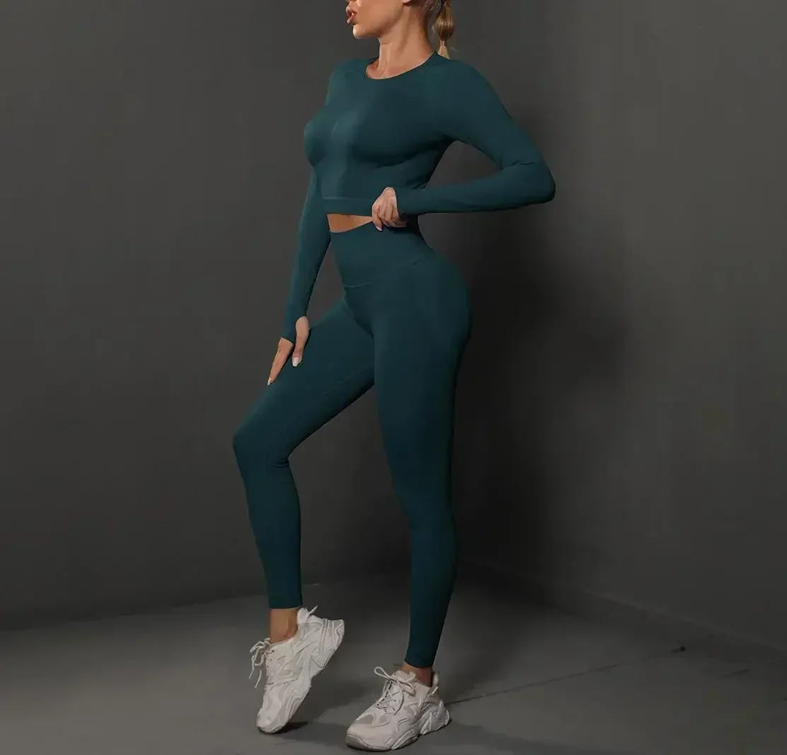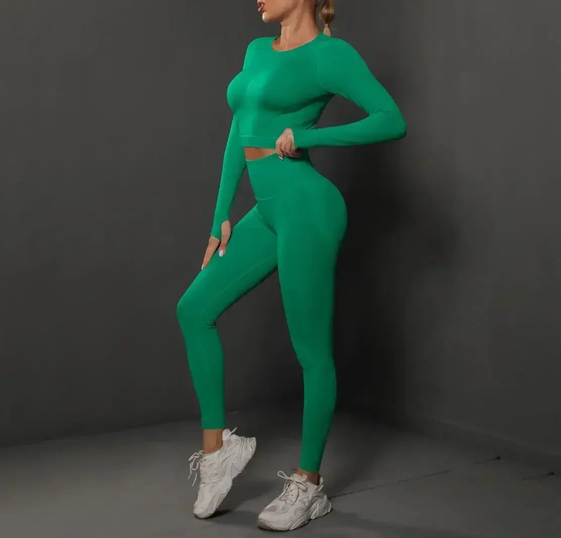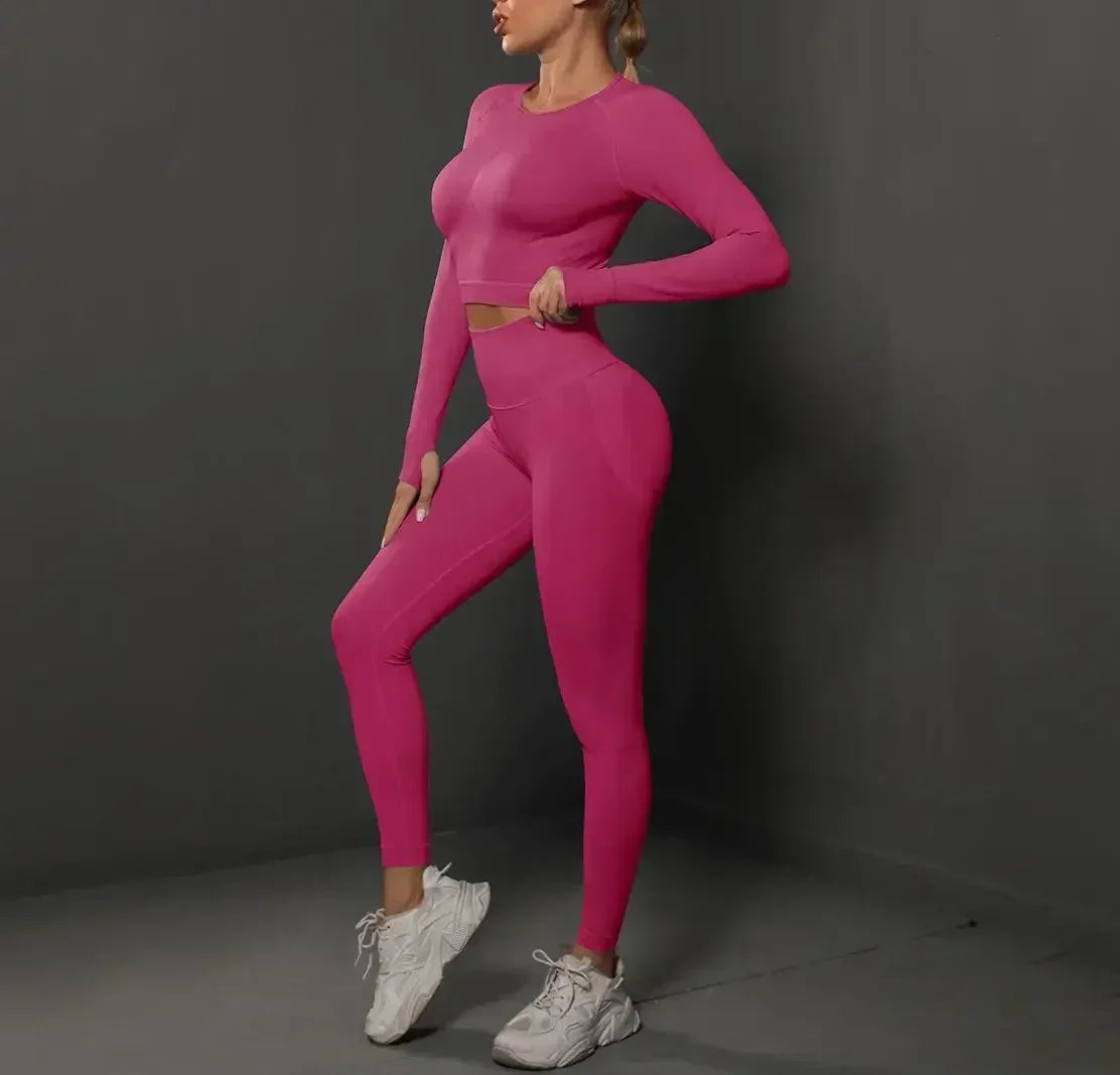 Conjunto de Yoga Feminino Sem Costura, Justo e Modelador de Quadril, Ideal para Esportes, Corrida e Fitness
