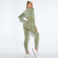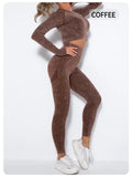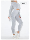 Conjunto de Yoga Feminino Sem Costura. Top Esportivo de Manga Longa e Calça de Yoga Modeladora