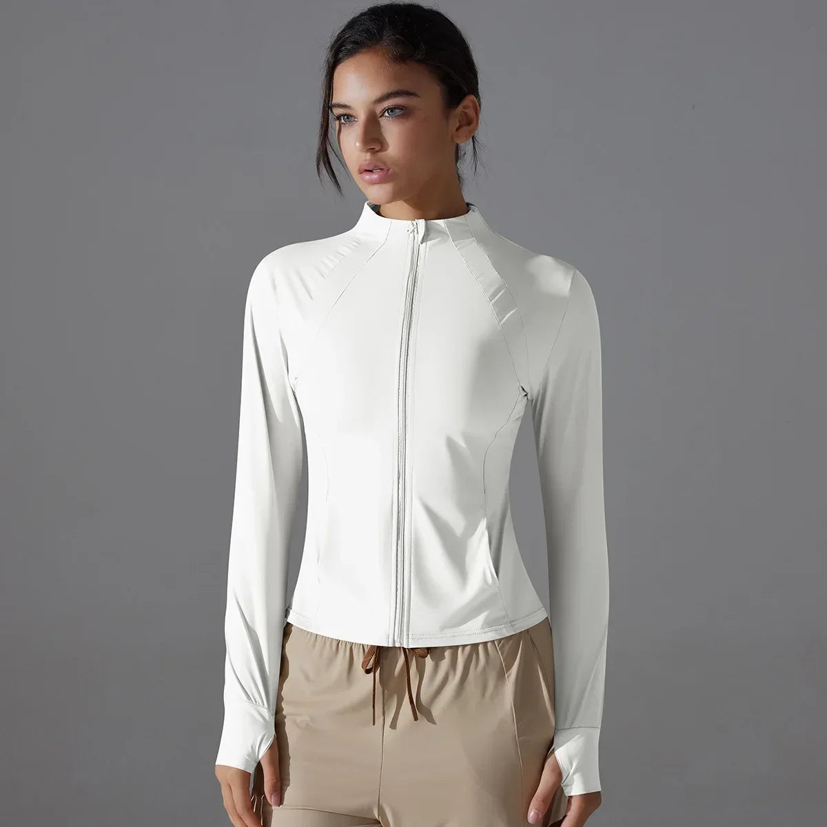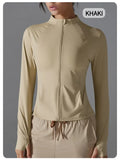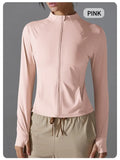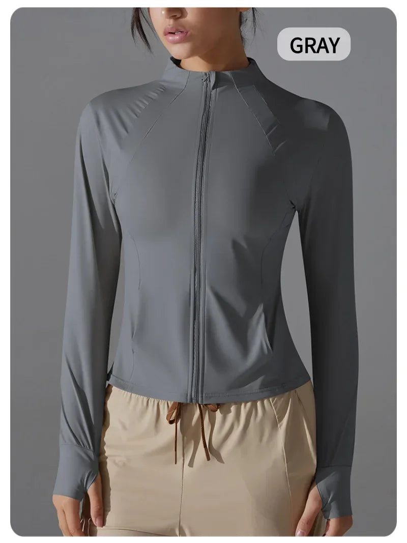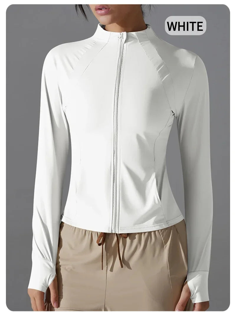 Jaqueta feminina Respirável e resistente aos raios UV, perfeita para esportes, corrida e atividades físicas.