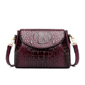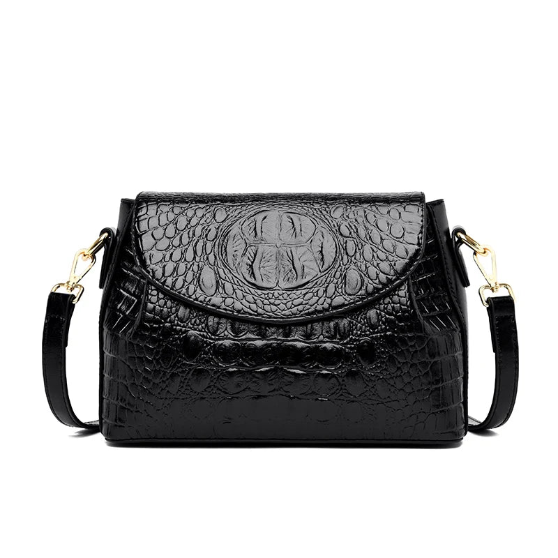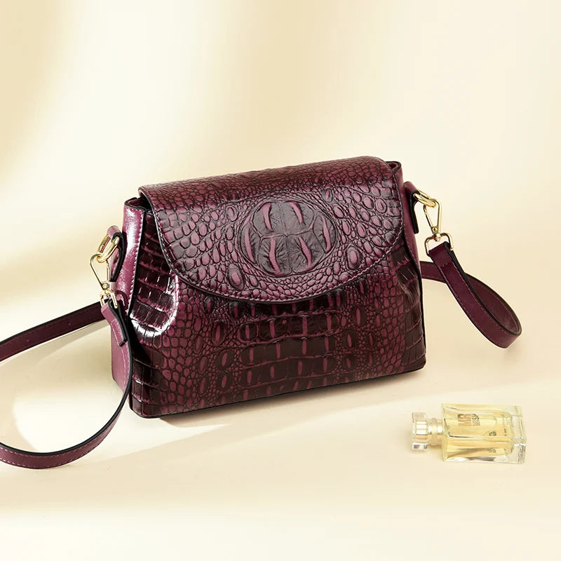 Bolsa transversal feminina em couro com estampa de crocodilo